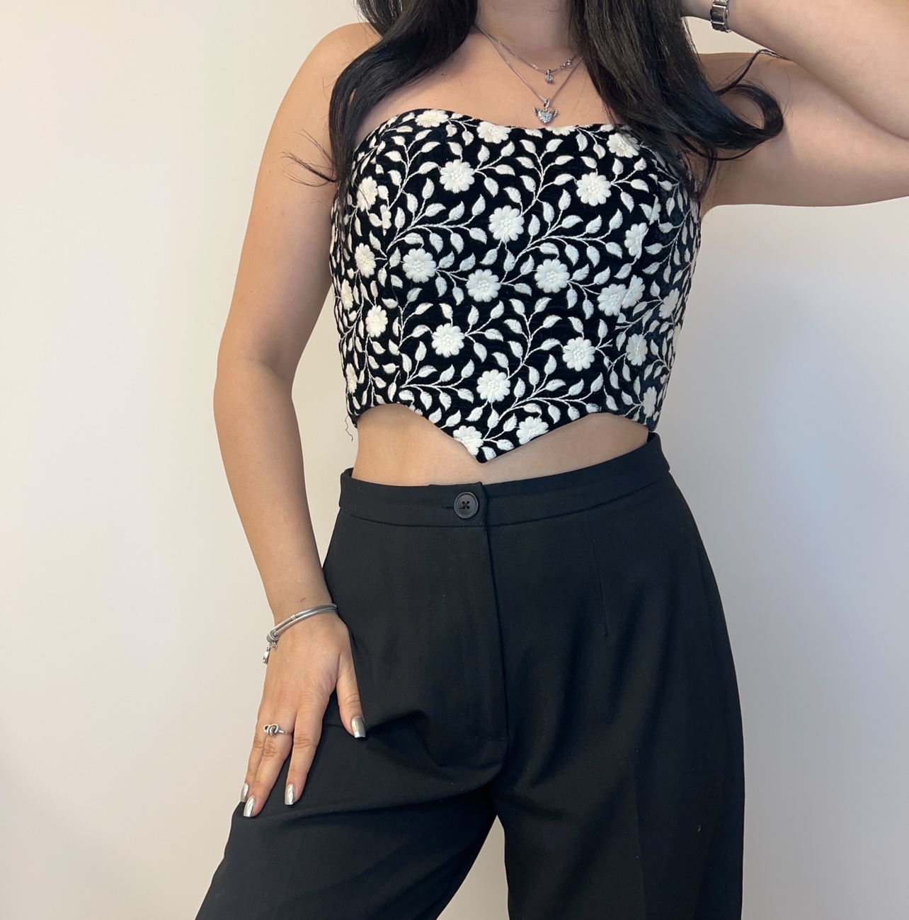 عرض کلی کراپ بدون در نظر گرفتن بند ۶۸ cm اندازه قد پهلو ۲۰ cm اندازه قد جلو کراپ ( بلندترین قسمت کراپ ) حدود۲۶ cm