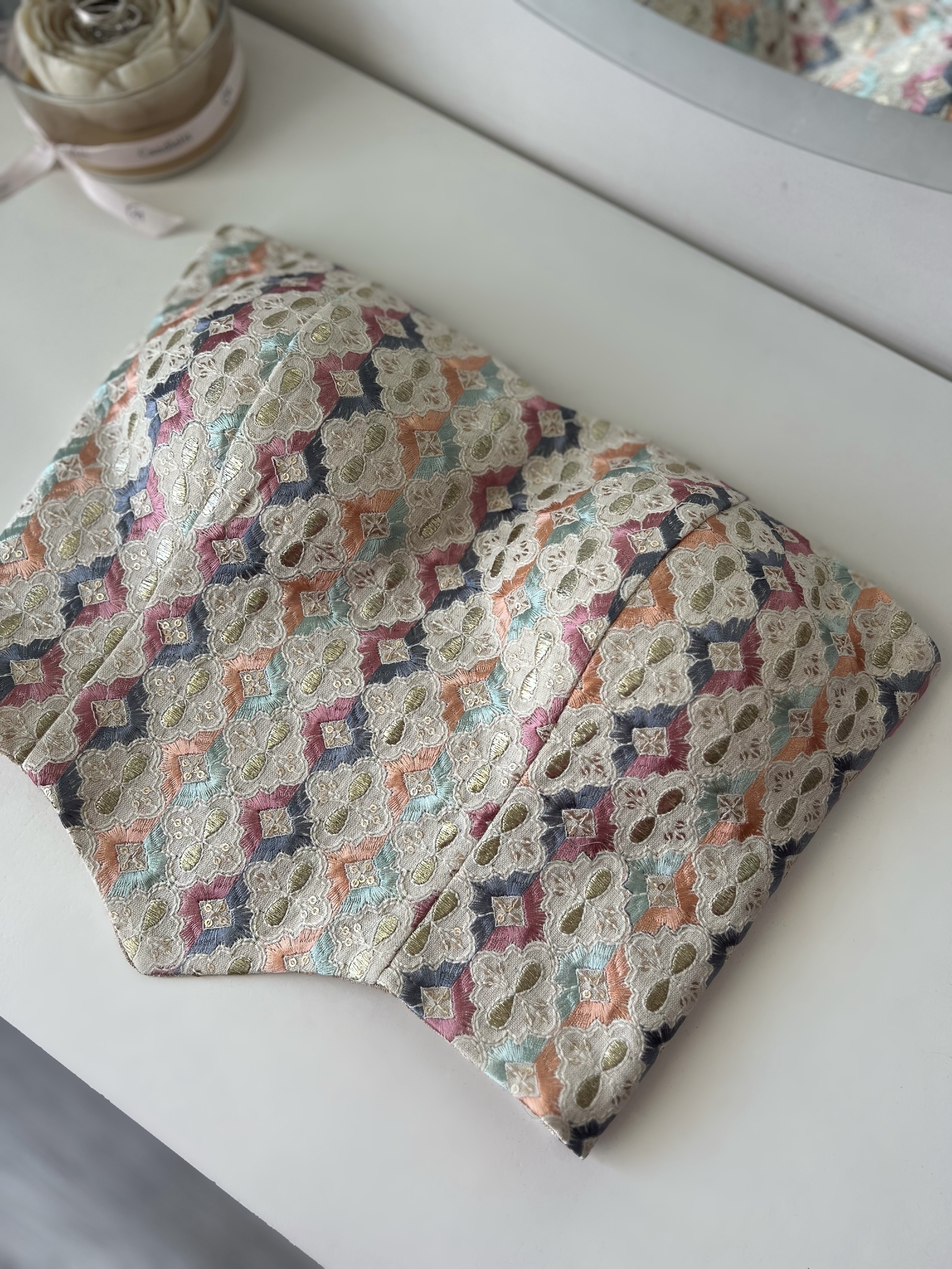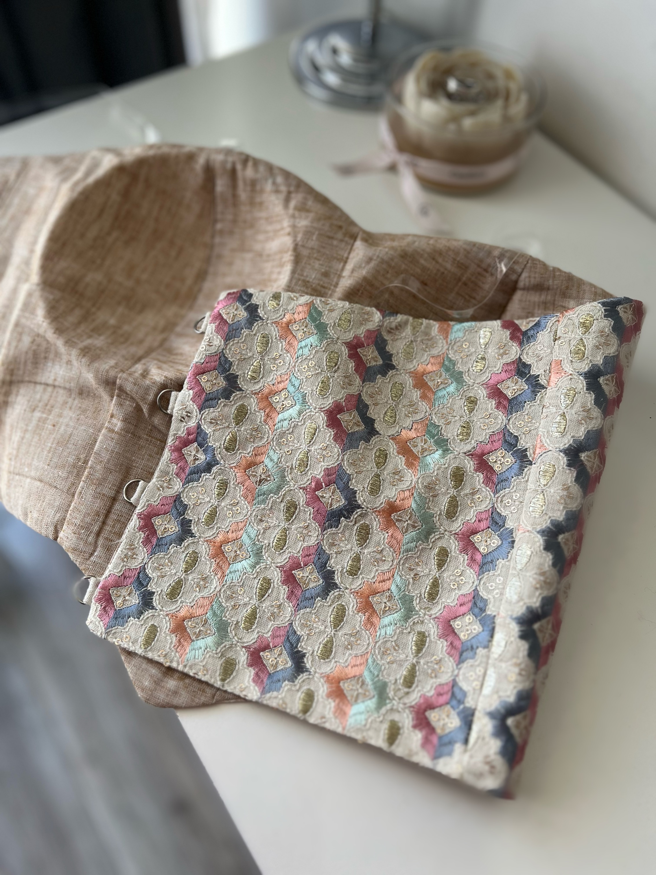 آسترداردپشت بندی✔️بندنامرئیجنسلینن گلدوزی شدهاندازه هااندازه عرض کل کراپ ۷۵cm اندازه طول پهلو ۲۱ cm بلندترین قسمت کراپ (جلو) ۲۸ cmکاپدارد
